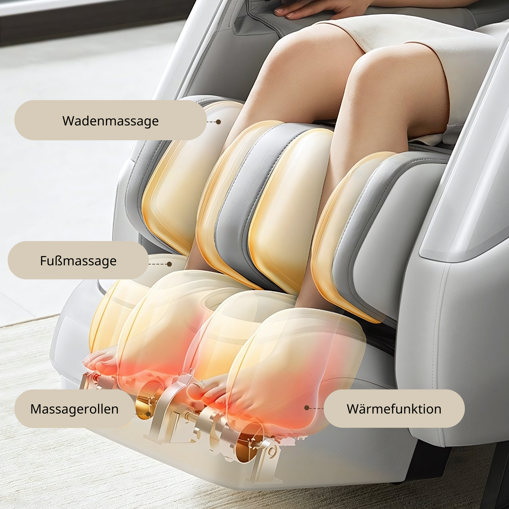 Umfassende Fuß- und Wadenpflege: Genießen Sie eine belebende Fußmassage mit Luftdruckkissen, Rollen und der einzigartigen Guasha-Funktion für die ultimative Fußpflege.