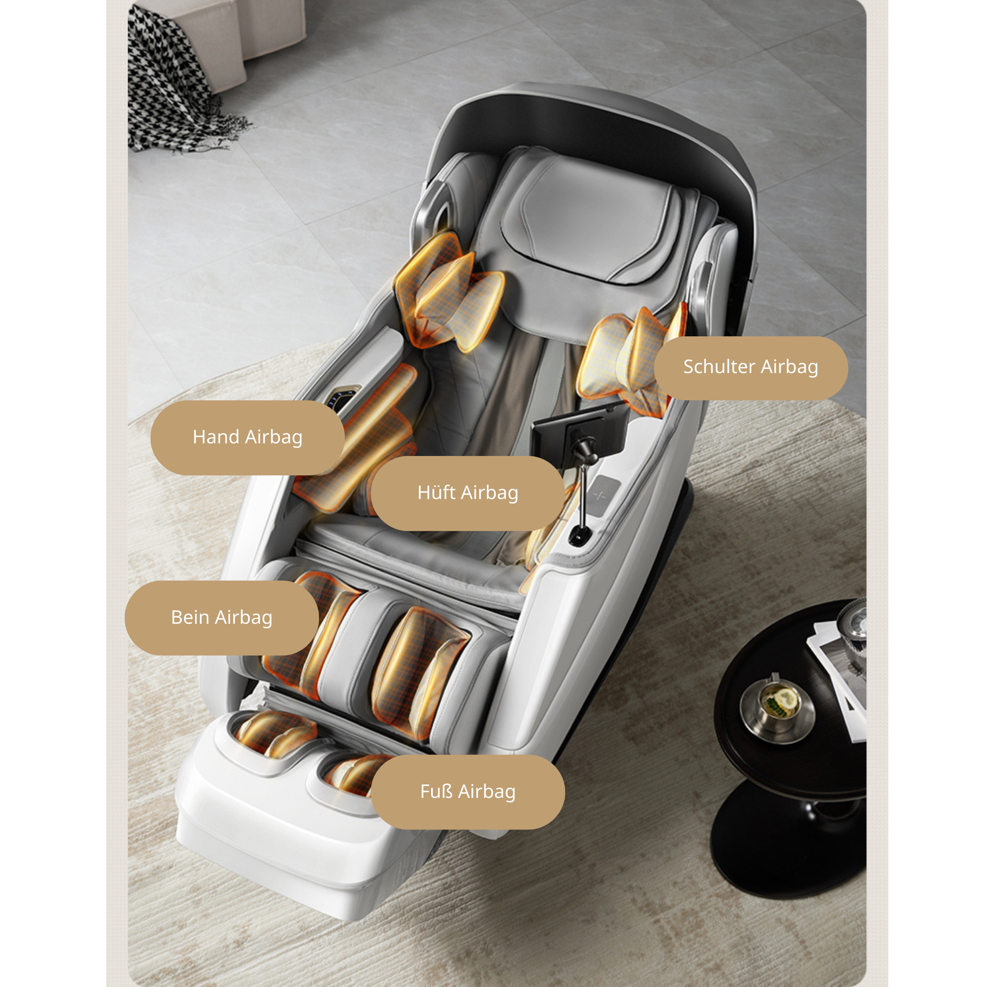 4D-Massagemechanismus: Der Nobless ist mit anthropoiden Silikon-Massageköpfen ausgestattet, die eine menschenähnliche Berührung bieten und eine tiefe, beruhigende Massage von Nacken bis Gesäß ermöglichen.