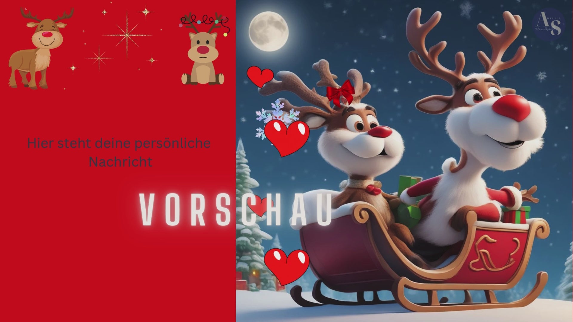 Überrasche deine ganze Familie mit unserem digitalen Weihnachts-Videogruß. Dieses Video ist für Groß und Klein konzipiert und zaubert jedem ein Lächeln ins Gesicht: wunderschöne Bilder, stimmungsvolle Videos und liebevolle Wünsche, die den Zauber von Weihnachten einfangen. Natürlich gehört eine persönliche Nachricht von dir dazu, die du einfach im Textfeld unten eingeben kannst. Dies macht deinen Weihnachtsgruß so einzigartig und lässt die Herzen deiner Lieblingsmenschen höher schlagen. Unterlegt wurde dieses Video mit fröhlicher weihnachtlicher Musik.